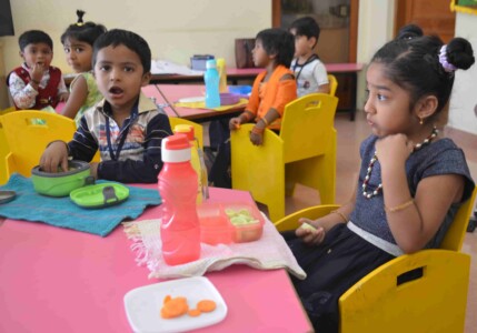 All our classrooms are well ventilated allowing fresh air and a flood of natural light. Beautiful artworks by children fill the walls, which brings colour and life in the workplace. Spacious storage areas for children to store their belongings are sufficiently provided in each classroom